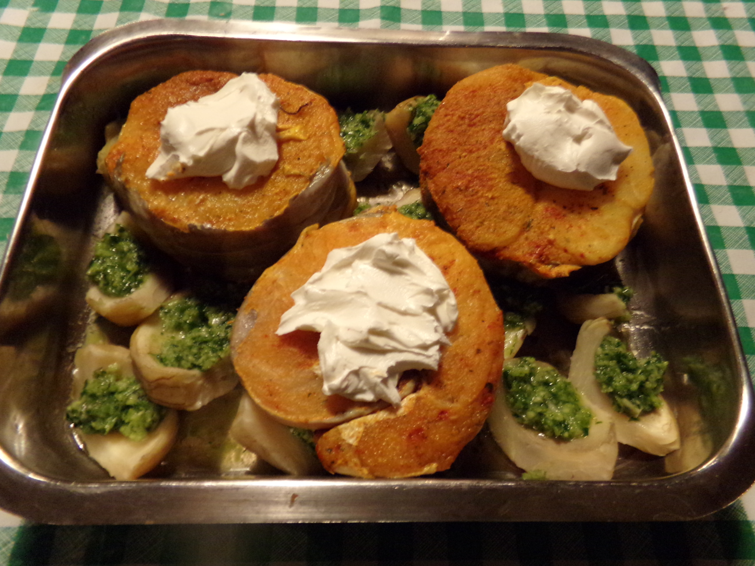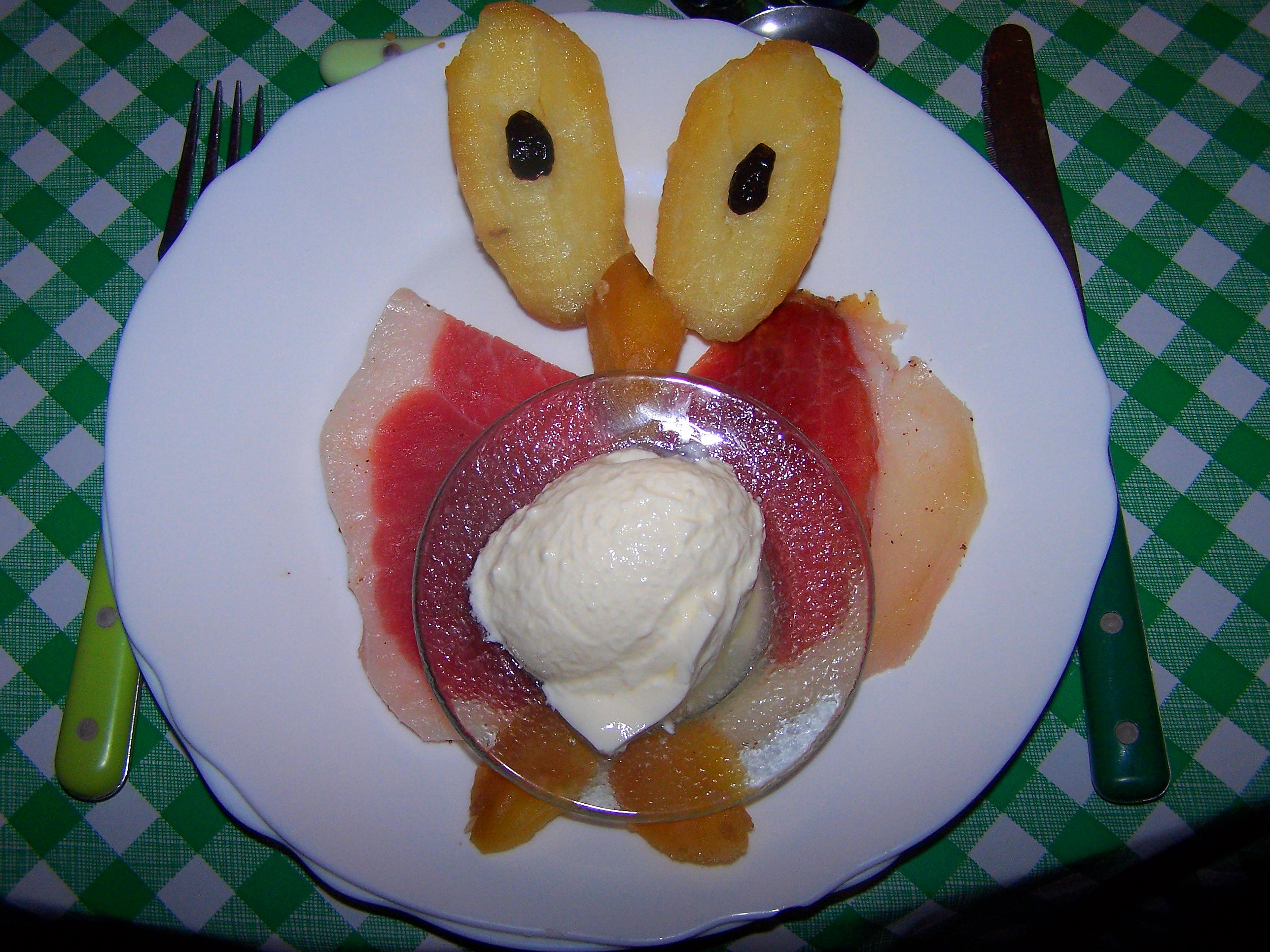 blanc beignets d'acacia crème anglaise CLAFOUTI (de pain salé)