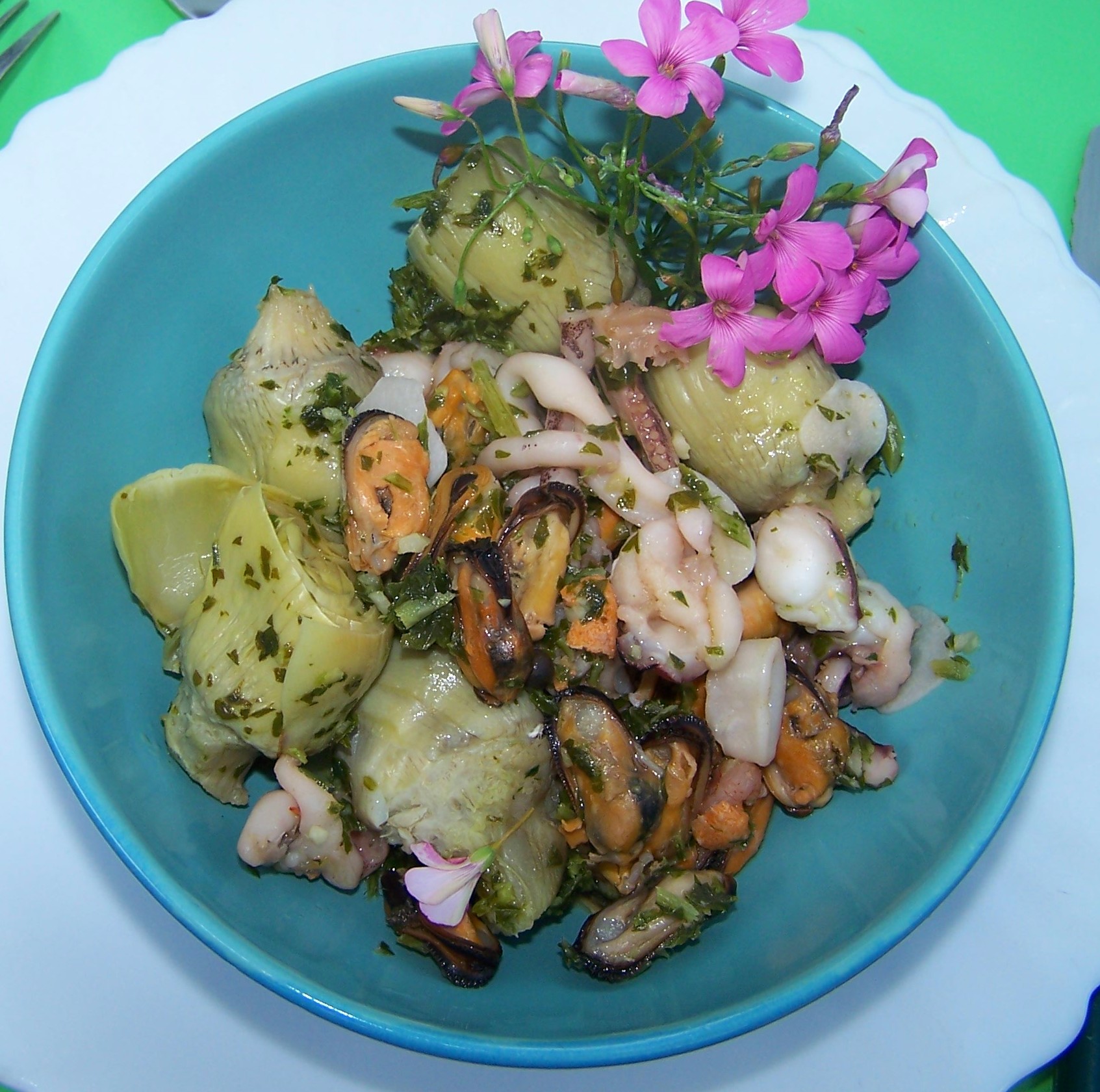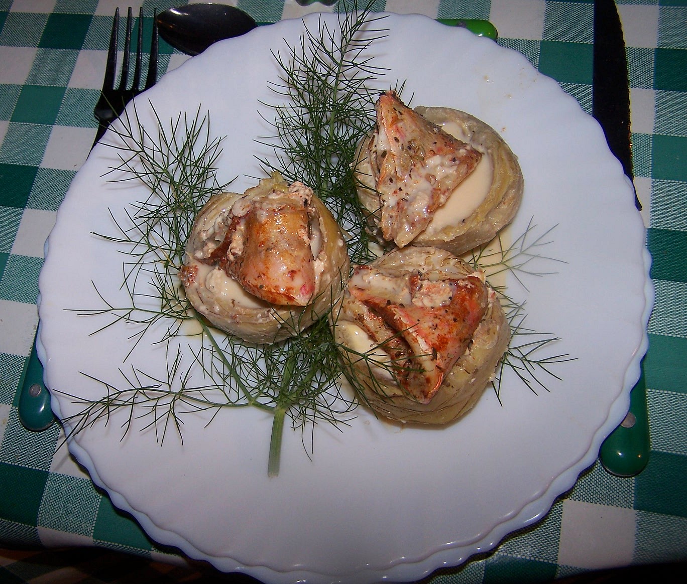A B C DE FG HIJK L M N OP Q R S T à Z AIL Le plus connu peut-être des bulbes condimentaires classiques , vous me pardonnerez d'être "chauvine" et de préférer l'ail blanc de Beaumont-de Lomagne ou l'ail rose de Lautrec à l'ail violet du midi ... dont je reconnais les mérites (comme disait le poète: "je ne crache pas dessus") mais je connais peut-être mieux les deux premières, leurs qualités et leurs petits défauts et je les utiliserais de préférence . Rassurez-vous dans les deux cas "ça donne du goût ... et de l'odeur" . Si vous souhaitez chasser l'odeur d'ail de votre haleine après un "grand aïoli", croquez donc quelques grains de café fraîchement torréfié ! Vous n'aimez pas le café ?? Une graine d'anis étoilée marchera aussi aulx au vinaigre d'onagre et ne pas oublier un monument local le "PAN GOUSSÉ" NB A voir aussi CRÈME (s) d'AULX, ÉCHALOTES ET OIGNONS voir la fiche AULX ÉCHALOTE OIGNONS une fiche qui vous servira si souvent ARTICHAUT Quand je vous disais que vous mangez des fleurs depuis toujours, voici un bon exemple l'artichaut dont les deux cousins (gros "macau" et "petit violet") sont aimés sur notre table depuis Catherine de Médicis . Ce fut une Reine superbe et une reine indispensable dans la cuisine française puisqu'elle emmena avec elle, jardiniers, cuisiniers, instruments et produits qui bouleversèrent les habitudes culinaires de nos ancêtres . Ils introduisirent beaucoup de nouveaux produits qui varièrent nos menus et sont aujourd'hui incontournables . anhel carchofa escaravis bigarrada